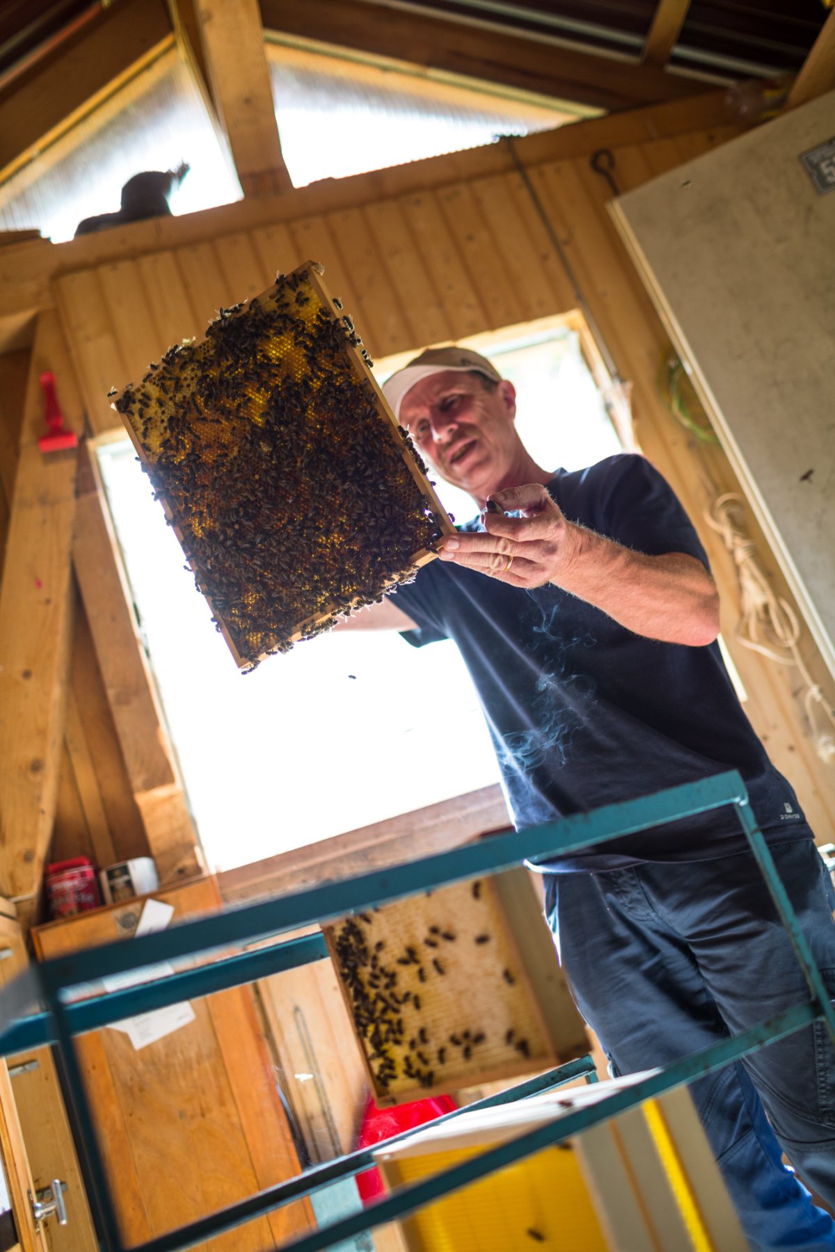 Nebst etwas Theilersbirne Schnaps erhielt Ruedi ein Apidea mit eingraviertem Logo und einer Widmung. Für sein grosses Engagement für den Verband aber auch für die Honigbiene, insbesondere die heimische Dunkle Biene und die Belegstelle Rothbach, wurde Ruedi mit grossem Applaus zum Ehrenpräsidenten ernannt.